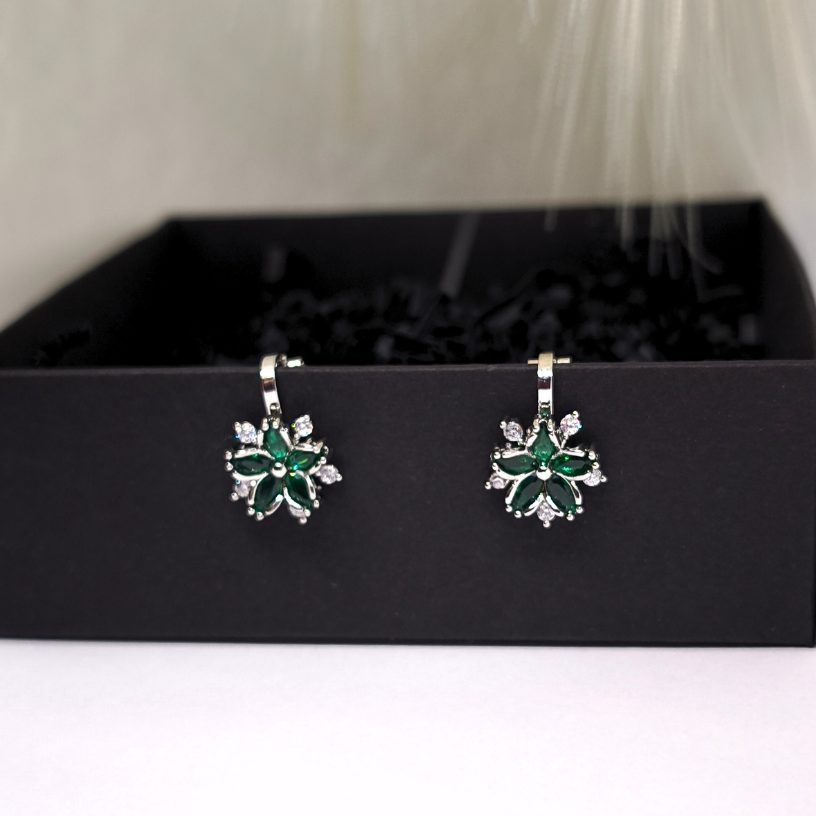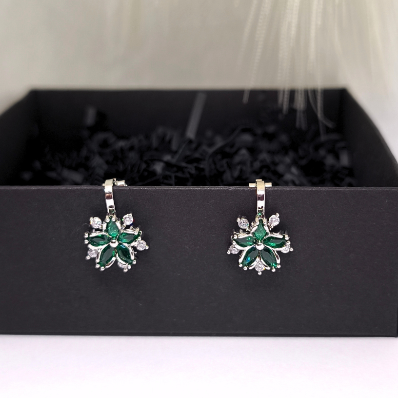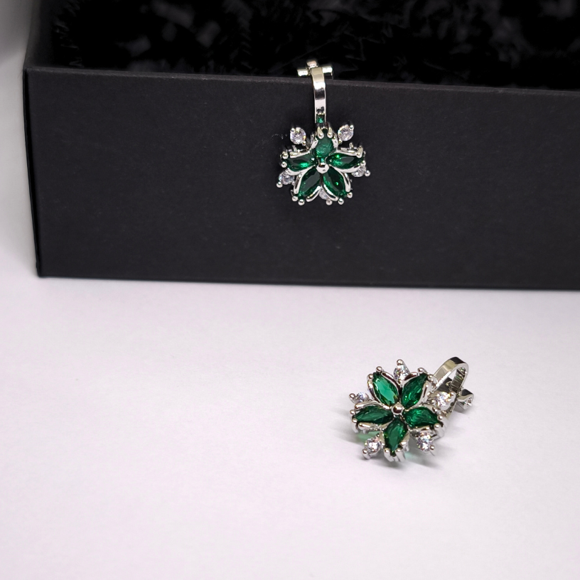 Avastage täiuslik stiili ja luksuse kombinatsioon kõrvarõngaste-klipsidega „Roheline elegants“ 💚🌿. Need erilise disainiga kõrvarõngad säravad sügava smaragdivärviga, mis sümboliseerib harmooniat, rahu ja loomulikku elegantsi. Iga kroonlehte kaunistavad hoolikalt paigutatud kristallid ning ümbritsevad säravad valged kivid lisavad ehete särale ja luksusele 💎✨.