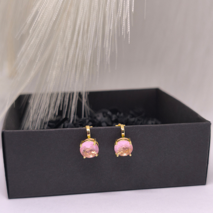 Šampanja toonis roosa kristall murrab valgust õrnalt, andes kõrvarõngastele luksusliku, kuid mitte ülekoormatud võlu. Kuldse värvi raam rõhutab veelgi kristalli soojust ja elegantsi. ✨