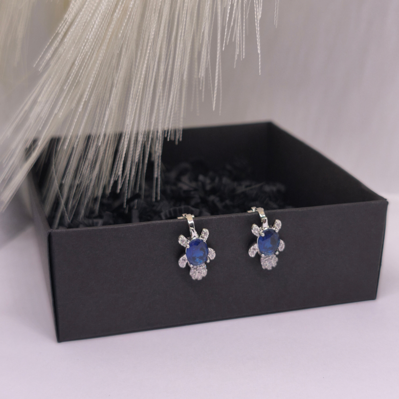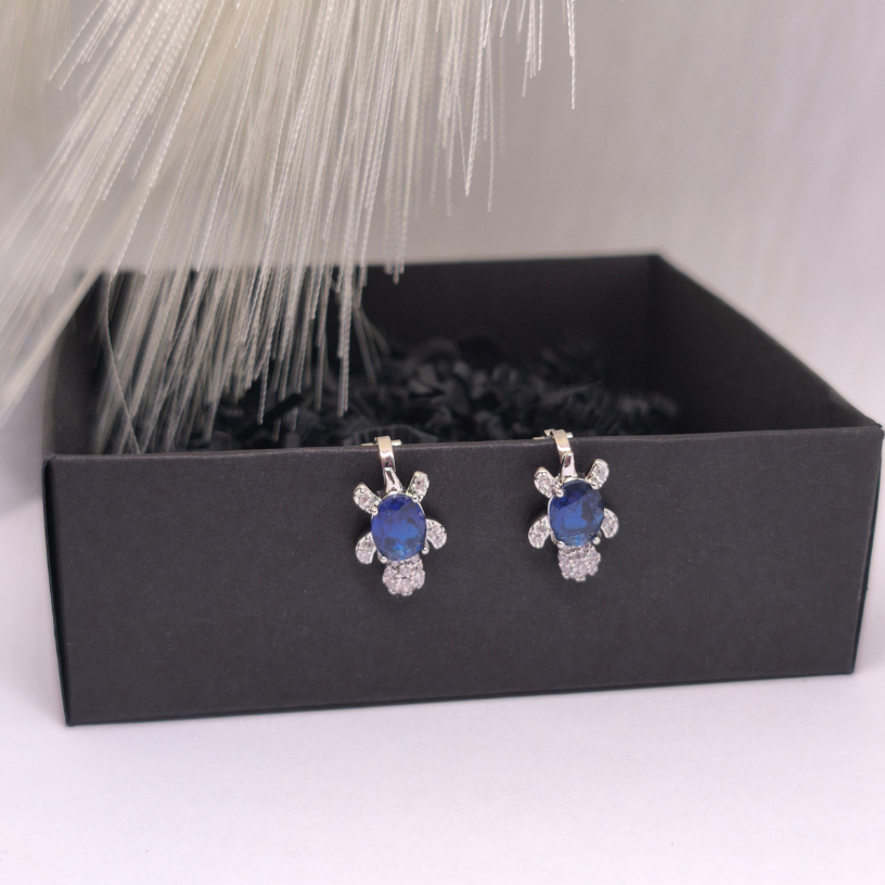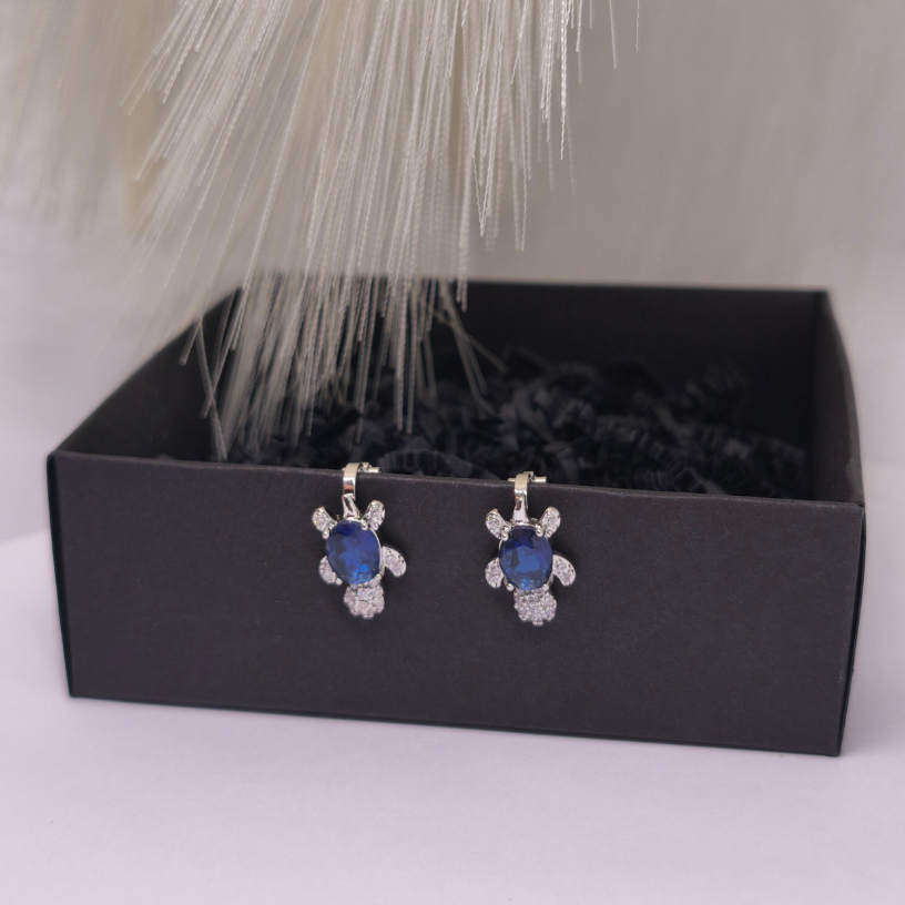 Keskmine sügavsinine kivi meenutab ookeani rahu, samas kui peened säravad kristallid rõhutavad kilpkonna kuju ja lisavad kõrvarõngastele luksuslikkuse tunnet. See on aksessuaar, mis köidab pilku, kuid jääb elegantseks ja mitte ülekoormatuks.