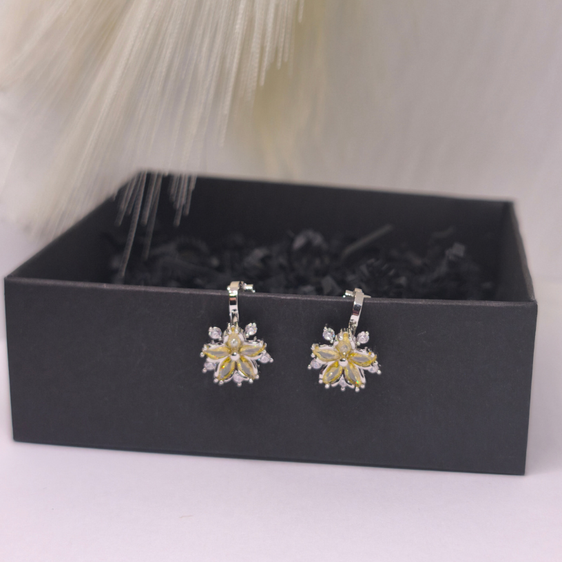 Lillemotiiv sümboliseerib naiselikkust, kergust ja loomulikku ilu, kollased kristallid lisavad elavat, säravat aktsenti.