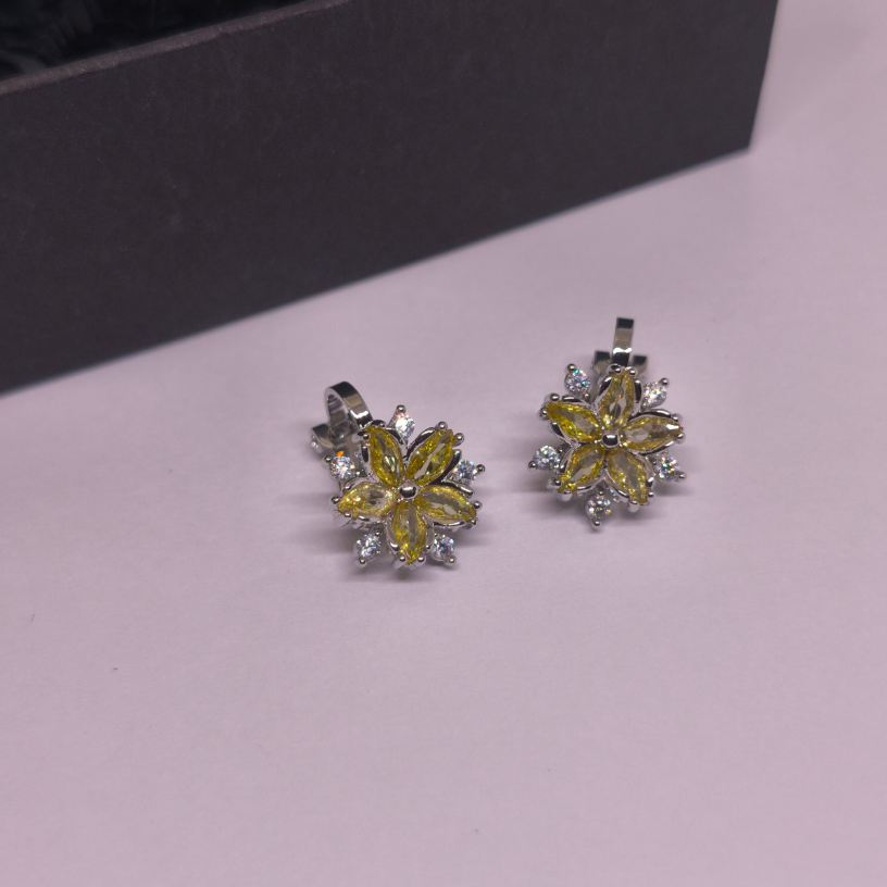 ✨ Lillekujulise disainiga luksuslikud kollased kristallid.