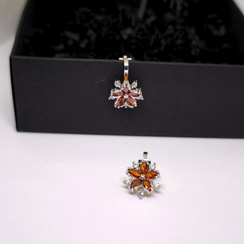 Laske oma stiilil särada muljetavaldavate klõpsudega „Tulised kroonlehed“ 🔥🌺. See on stiilne aktsent naistele, kes armastavad erksat, kuid elegantset ehete disaini. Oranžidest, tuld meenutavatest kristallidest moodustatud kroonlehed loovad peene sära ning nende ümber olevad läbipaistvad kivid lisavad ehtesse luksust 💎✨.