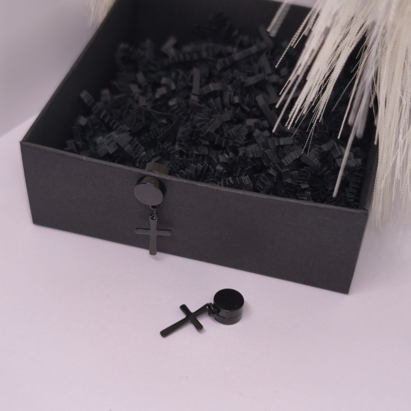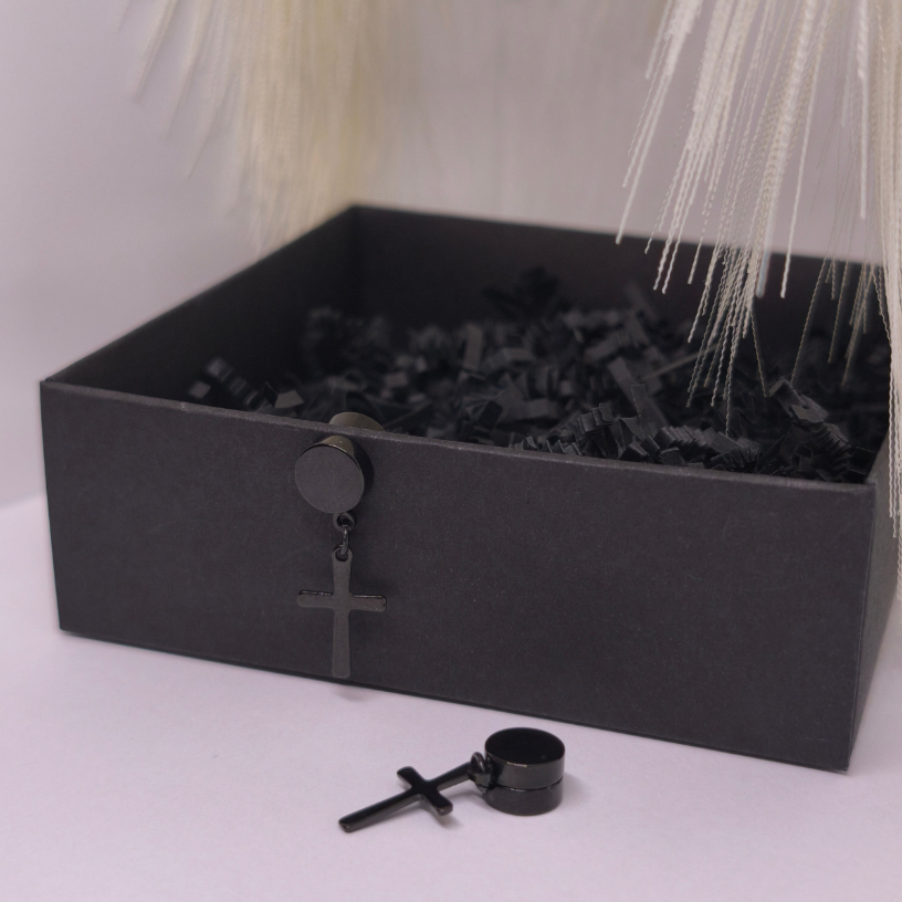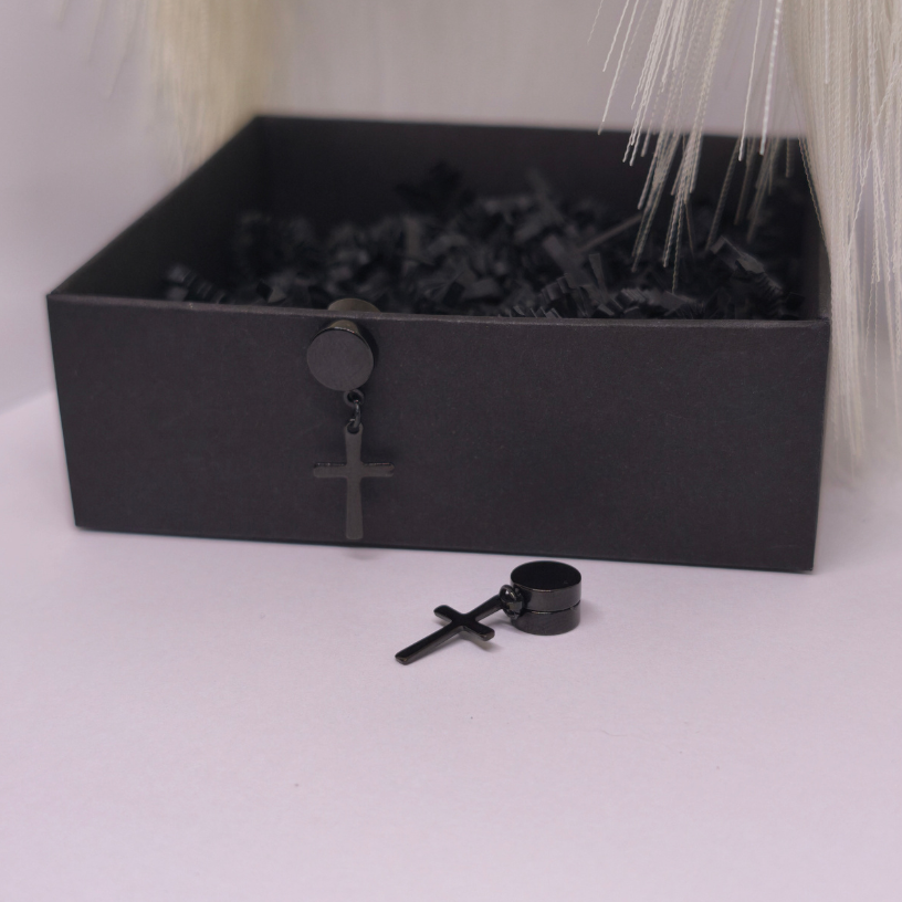 Magnetilised kõrvarõngad „Pimeduse märk“ – kaasaegne must aktsent, mis annab välimusele tugeva iseloomu ilma kõrvu augustamata. 🖤 Ristikuju ripats õõtsub liikumises õrnalt, samas kui tugev magnet tagab mugava ja turvalise kandmise kogu päeva vältel.