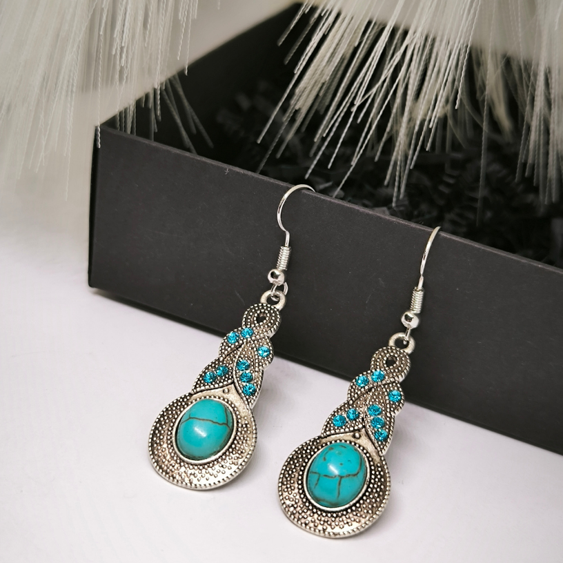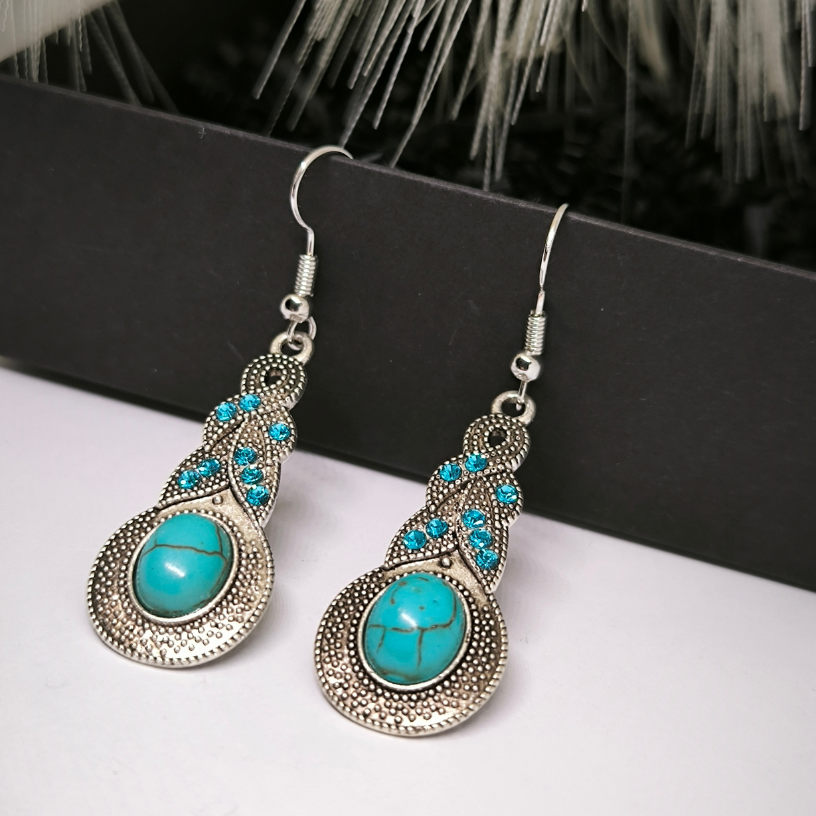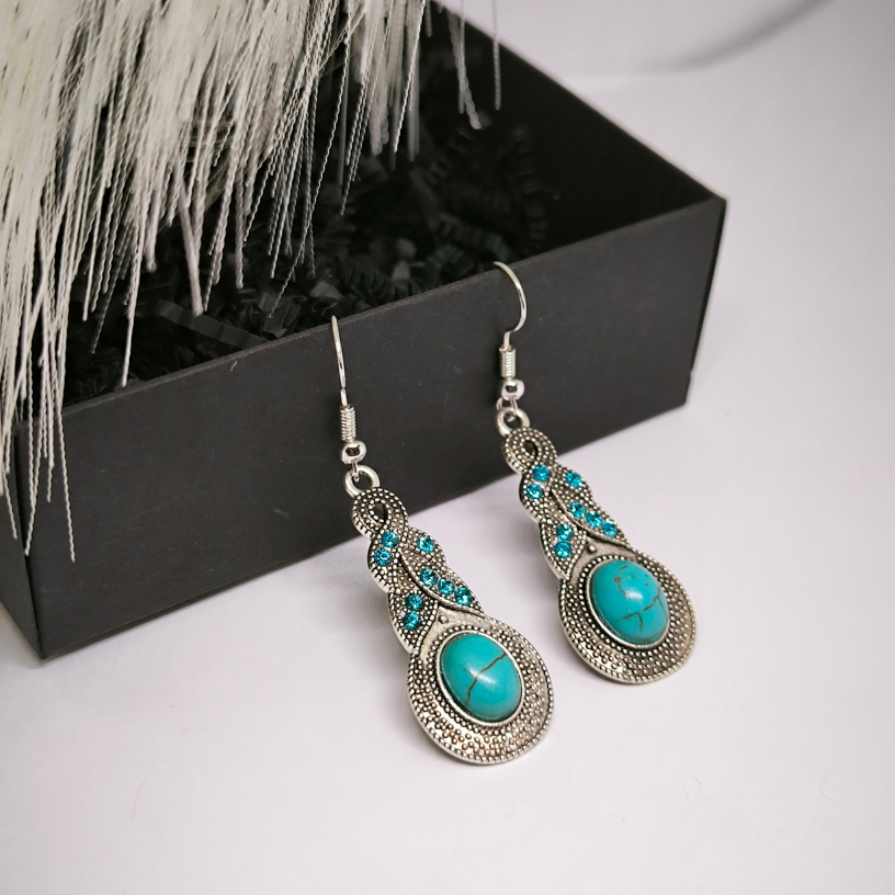 Need boheemlasliku stiiliga kõrvarõngad ei ole mitte ainult ehe, vaid ka unikaalne teie stiili rõhutaja. Valmistatud naturaalsest türkiiskivist, nad sümboliseerivad loomulikkust, harmooniat ja vabadust. 🌿 Väljendusrikkad ornamendid koos türkiissiniste kividega annavad neile kõrvarõngastele erilise võlu. 🌀