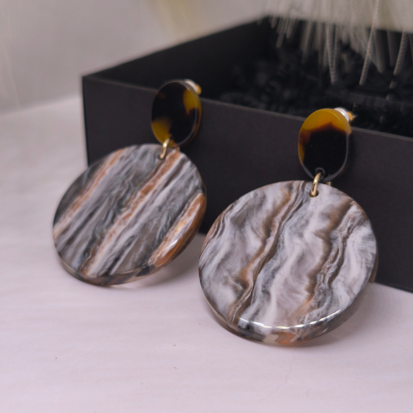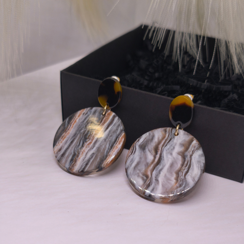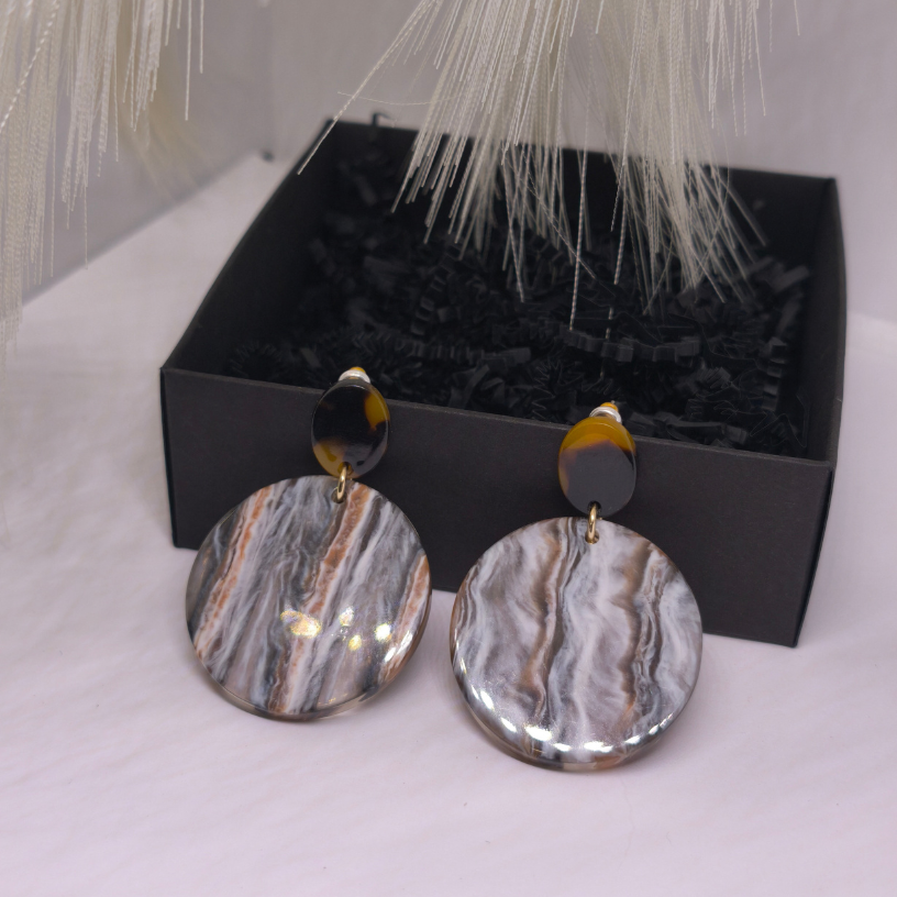 💎 Kõrvarõngad „Marmori saladus“ – see on rafineeritud maitse ja looduse ilu kombinatsioon, mõeldud naisele, kes hindab unikaalsust ja harmooniat. Õrnalt laineline marmori muster pruunide, hallide ja valgete toonidega meenutab loodusliku kivi ilu, mis särab peene elegantsiga.