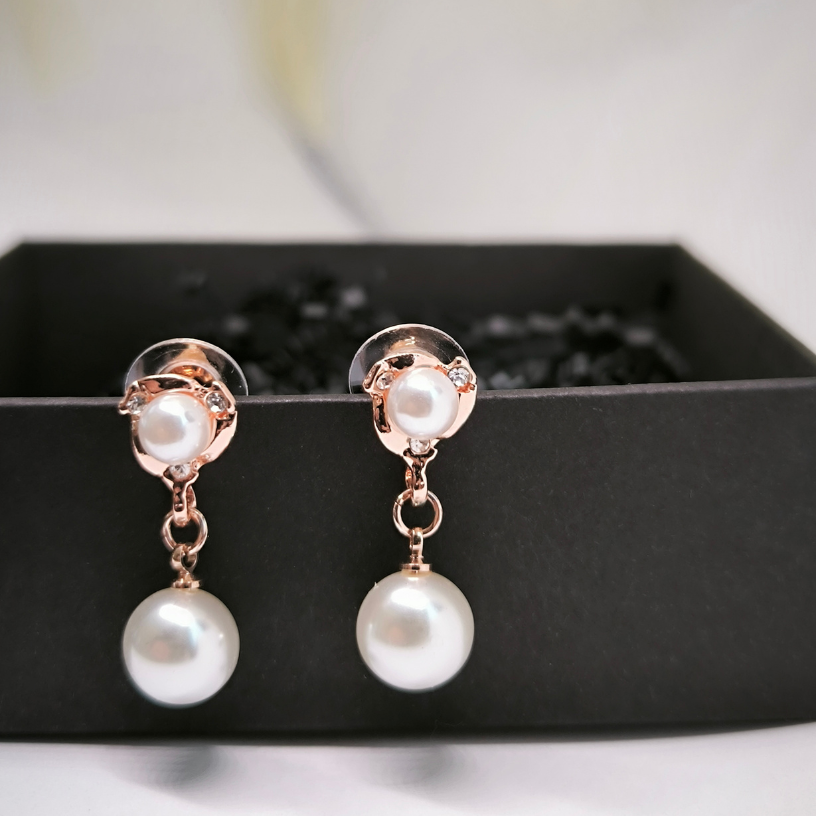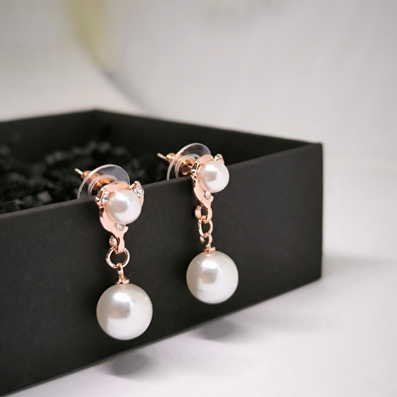 Need rippuvad kõrvarõngad pärlimitatsiooniga on täiuslik kombinatsioon peenest klassikast ja modernsetest detailidest. Väikesed kristallid lisavad õrna sära, samas kui pärlimitatsioon säilitab vaoshoitud ja rafineeritud esteetika.