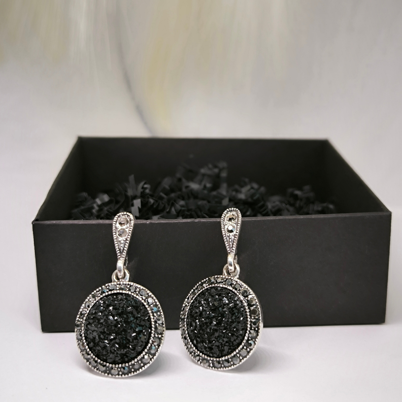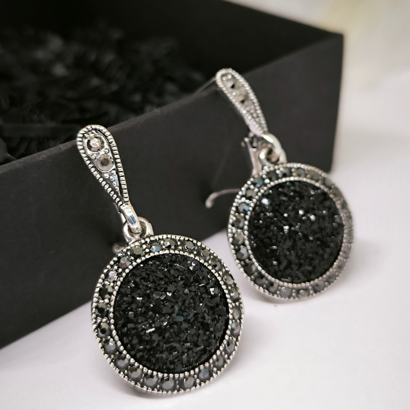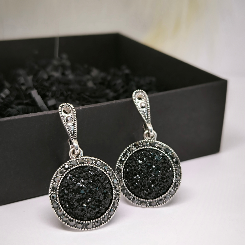 Need mustade kristallide ja tsirkooniakividega rippuvad naiste kõrvarõngad on suurepärane valik naistele, kes hindavad peent rafineeritust ja mitmekülgsust. Eriline disain võimaldab neid kombineerida nii igapäevaste kui ka pidulike rõivastega, muutes need teie ehtekollektsiooni asendamatuks osaks.
